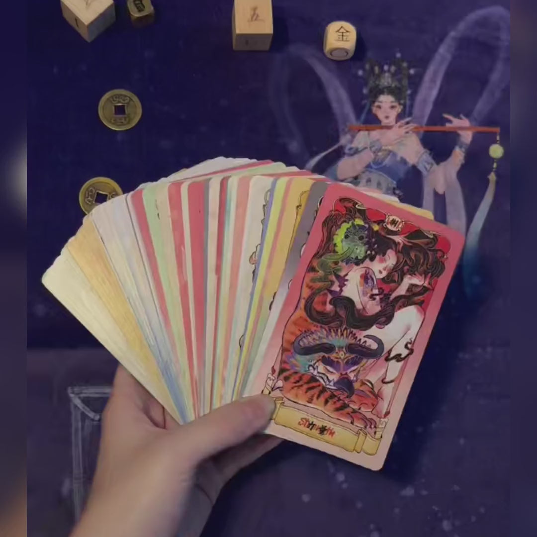 This is a unique tarot deck that takes Chinese mythology and cultivation (xiuzhen) culture as its soul and tarot divination as its form. It reinterprets the 22 Major Arcana of Western tarot as the enlightenment journey of an Eastern cultivator — ranging from the "Fool" (a young Taoist priest who has just embarked on the path of immortality) who enters the mortal world in ignorance, to the "World" (achieving the Dao and ascending to immortality) who transcends the cycle of reincarnation. Each card corresponds to a tribulation, an epiphany, or a karmic connection within the universe of the Nine Realms.