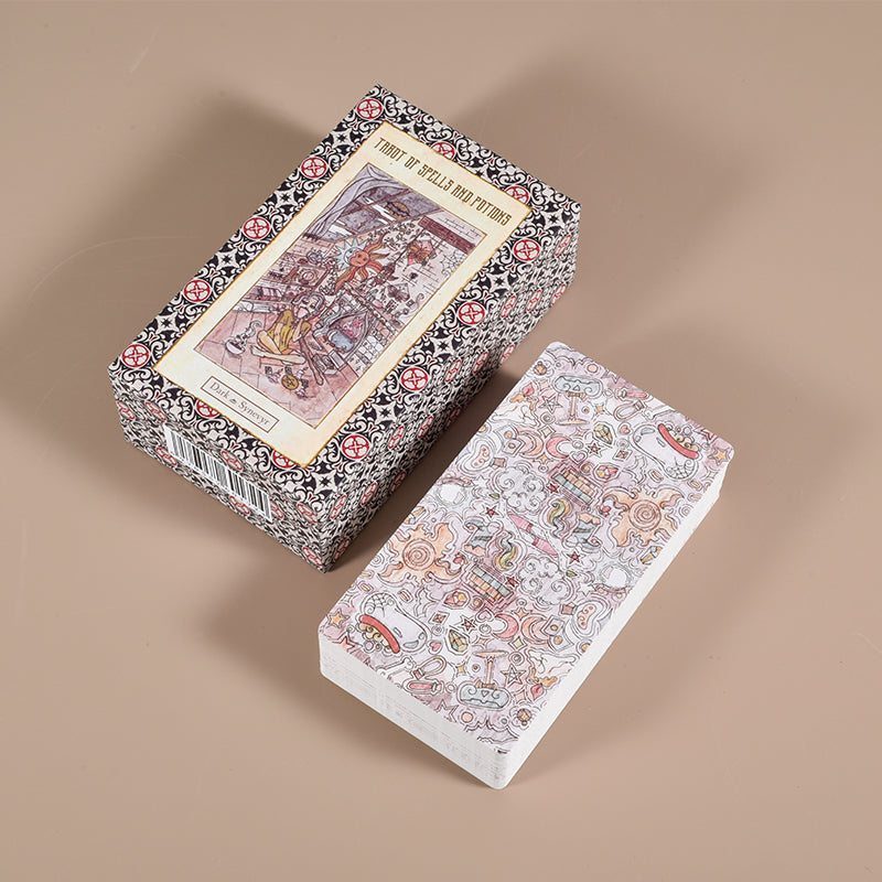 In the realm where esotericism meets imagination, the "Magic Potion" Tarot will accompany you on a new journey. It is the whispers of inspiration for alchemists and the maps of cosmic energy for astrologers. Within the Major Arcana, The Hermit guides you to explore your inner true self, while The Devil reveals the struggles of human nature and the opportunity for awakening; the Wands ignite passion for action, the Cups flow with poetic emotions, the Swords sharpen the edge of thought, and the Pentacles anchor the balance between material and spiritual realms.